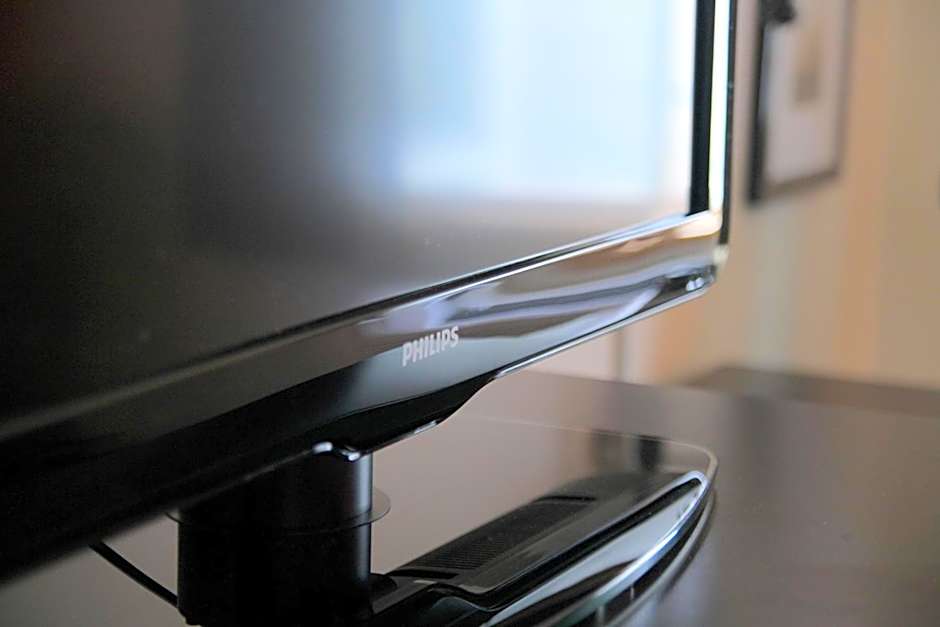 A flat-screen cable TV and sofa bed are included in this room, along with a coffeemaker.
